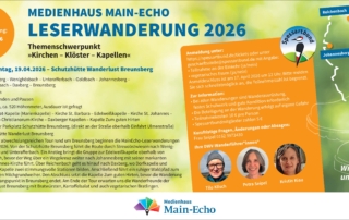 Anmeldung an: geschaeftsstelle@spessartbund.de Main Echo - Leserwanderung Themenschwerpunkt "Kirchen, Klöster und Kapellen" Sonntag, 19.04.2026 Strecke: Kapelle Edelweiß, Johannisberg, [...]