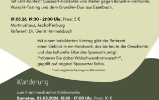Köhlerei - Vom Wirtschaftsfaktor zum Kulturgut am Dienstag, 19. Mai 2026 von 19.30 bis ca. 21.00 Uhr. [...]