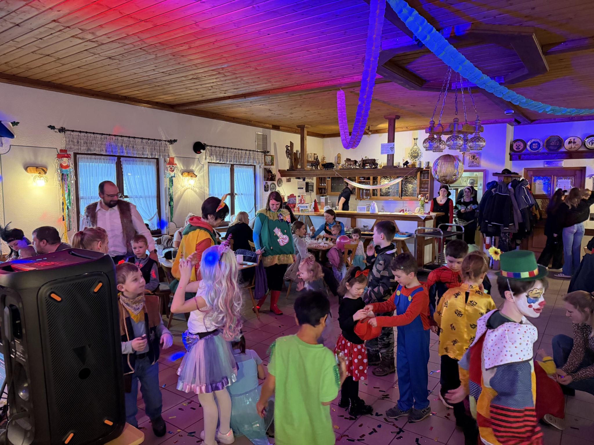 Auch in diesem Jahr begrüßte das Familienteam des Spessartbundes wieder Groß und Klein zum traditionellen Kinder-Faschingsnachmittag. Neben dem bunten Disko-Licht sorgten auch allerlei Süßigkeiten für Konfetti im Bauch. Selbst die kleinsten Gaudimäuse konnten in angenehmer Lautstärke die Hüften kreisen lassen und die närrische Zeit genießen. Luftballon-Meisterin Philina knotete wieder Kunstwerke für alle Kinder, die auch noch Tage später– bei guter Pflege – an einen fröhlichen Nachmittag erinnern.